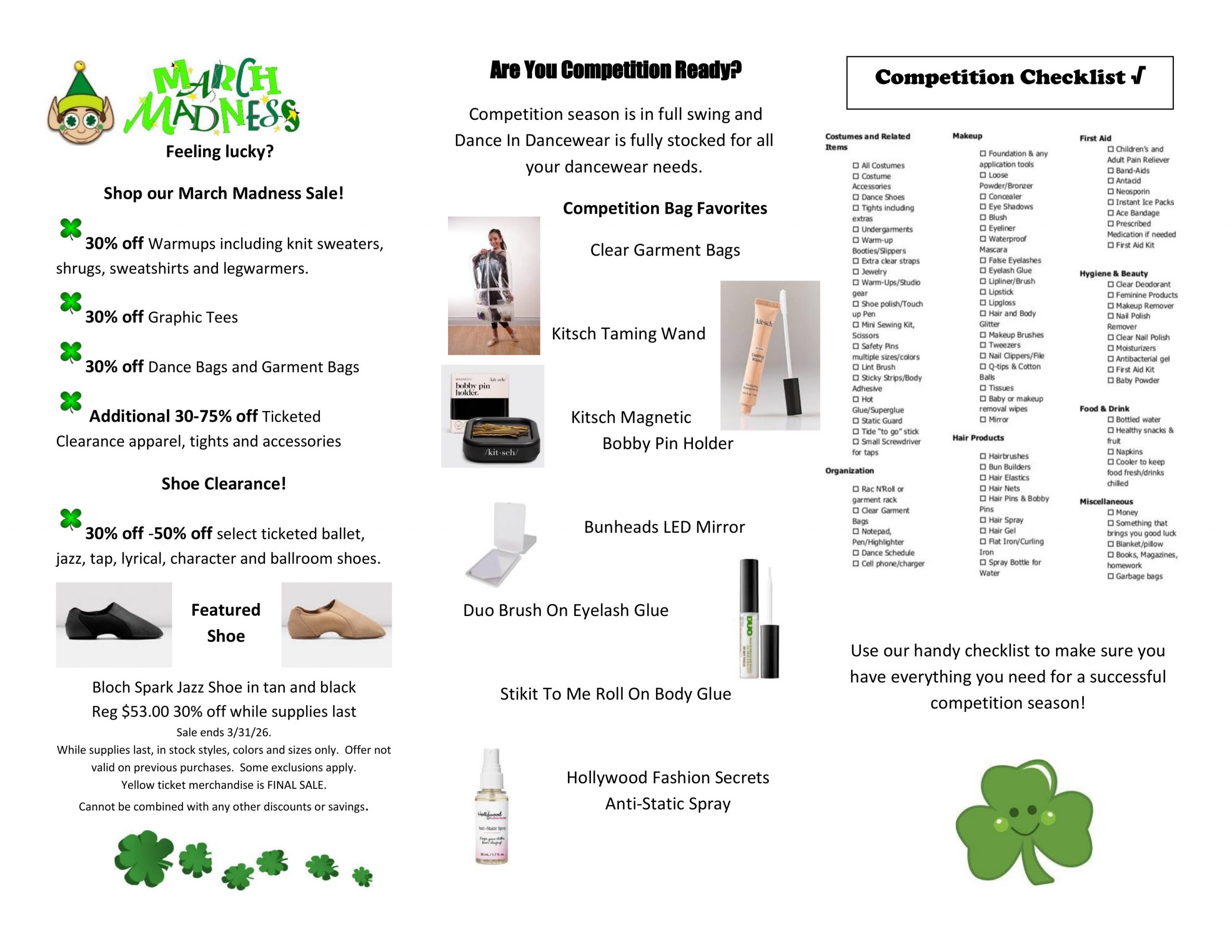 - Dance bags including garment bags and the Rac N’Roll